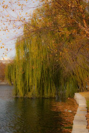 Keywords: willow weeping willow tree water fall autumn