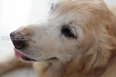 | Keywords: doggy family golden retriever goldenretriever taipei taiwan willy 台北 台灣 家人 自然 鮮花及植物 50mm 5d mark iii 5dmarkiii 5diii 黃金獵犬 pet dog animal 你真的很乖,很盡力的,撐著,陪我們了,謝謝你. 這幾天,我感覺你似乎還在貼心的陪著我,我想你知道我捨不得你. 但只要想起,自從你後腳不太方便行走後,就常常看到你睡覺時,像是夢見在跑步,不停地在滑動. 我想,我不應該放不下你,應該讓你放心的到天堂,快樂盡情的跑跳. 我真的很想念你.我會盡力的平復我的思念. 再見,威利,親愛的,謝謝你這15年來的陪伴. Goodbye,My little boy, My Love. Willy. Over the past 15 years,Thank you for your company. I really miss you so much... 你真的很乖,很盡力的,撐著,陪我們了,謝謝你. 這幾天,我感覺你似乎還在貼心的陪著我,我想你知道我捨不得你. 但只要想起,自從你後腳不太方便行走後,就常常看到你睡覺時,像是夢見在跑步,不停地在滑動. 我想,我不應該放不下你,應該讓你放心的到天堂,快樂盡情的跑跳. 我真的很想念你.我會盡力的平復我的思念. 再見,威利,親愛的,謝謝你這15年來的陪伴. Goodbye,My little boy, My Love. Willy. Over the past 15 years,Thank you for your company. I really miss you so much... |