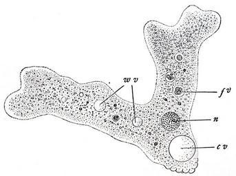 | Keywords: Wilson1900Fig3.jpg Original figure legend Amoeba Proteus an animal v food-vacuole à bersetzung nach der Originalabbildungslegende žAmoeba Proteus ein Tier das nur aus einer einzigen nakten Zelle besteht x280 Aus Sedgwick and Wilson's Biology <br /> n Zellkern nucleus ; w v Wasservakuole; c v kontraktile Vakuole; f v Nahrungsvakuole Amibe telle qu'observée par Wilson au microscope vers 1900 ; Traduction de la légende originale de la figure žAmoeba Proteus ; un animal constitukojphiué d'une seule cellule nue x280 tiré de Sedgwick and Wilson's Biology <br />n Noyau nucleus ; w v Vaculole d'eau; c v Vacuole contractile; f v Vacuole d'aliments Figure 3 of cite book Wilson Edmund B Edmund Beecher Wilson The cell in Development and Inheritance 2 1900 The Macmillan Company New York 1900 Edmund Beecher Wilson 1856 “1939 PD-old-70-1923 Cell diagrams Amoeba proteus |