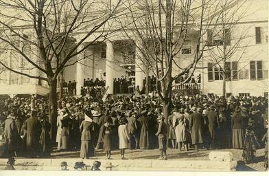 | Keywords: woodrow wilson woodrowwilson mary baldwin college marybaldwincollege crowd staunton virginia outdoor Local Accession Number: PC 113 Description: Postcard of Mary Baldwin Seminary receiving the Wilsons. Photographer: Unknown Source: Unknown Size: 3x5 Medium: Print, Black and White Date: 12-28-1912 Local Accession Number: PC 113 Description: Postcard of Mary Baldwin Seminary receiving the Wilsons. Photographer: Unknown Source: Unknown Size: 3x5 Medium: Print, Black and White Date: 12-28-1912 |