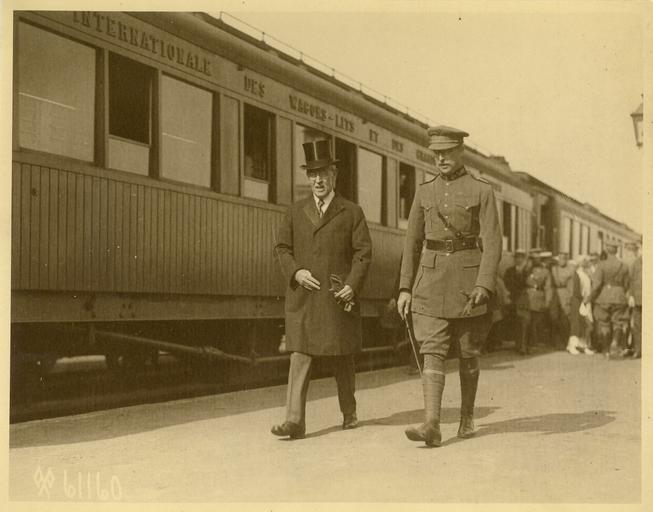 | Keywords: belgium world war one worldwarone president wilson king albert kingalbert adinkerke monochrome Local Accession Number: 1801 Description: President Wilson and King Albert walk alongside the train in Adinkerke. Photographer: U.S. Signal Corps Source: Unknown Size: 7x9 Medium: Print, Sepia Date: 06-18-1919 Local Accession Number: 1801 Description: President Wilson and King Albert walk alongside the train in Adinkerke. Photographer: U.S. Signal Corps Source: Unknown Size: 7x9 Medium: Print, Sepia Date: 06-18-1919 |