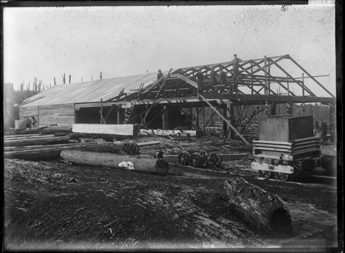 Keywords: blackandwhite monochrome photo border outdoor black and white Wilson's mill, Wharuakura, with the roof under construction. Photograph taken 1900-1930 by William Archer Price. Quantity: 1 b&w original negative(s). Physical Description: Dry plate glass negative 4.5 x 6.5 inches Wilson's mill, Wharuakura. Price, William Archer, 1866-1948 :Collection of post card negatives. Ref: 1/2-000137-G. Alexander Turnbull Library, Wellington, New Zealand. natlib.govt.nz/records/22724349 Wilson's mill, Wharuakura, with the roof under construction. Photograph taken 1900-1930 by William Archer Price. Quantity: 1 b&w original negative(s). Physical Description: Dry plate glass negative 4.5 x 6.5 inches Wilson's mill, Wharuakura. Price, William Archer, 1866-1948 :Collection of post card negatives. Ref: 1/2-000137-G. Alexander Turnbull Library, Wellington, New Zealand. natlib.govt.nz/records/22724349 |