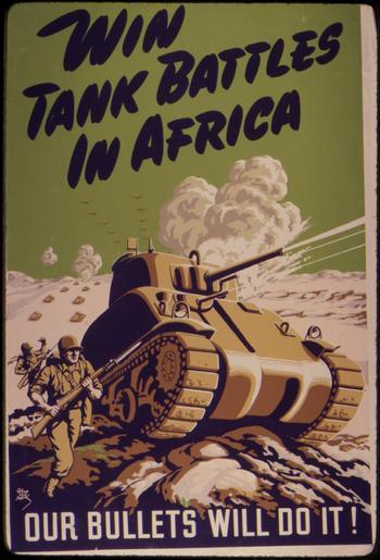 | Keywords: Win tank battles in Africa. Our bullets will do it^ - NARA - 534786.tif Scope and content General notes 534786 Local identifier 179-WP-935 Office for Emergency Management War Production Board 01/1942 - 11/03/1945 Still Picture Records Section Special Media Archives Services Division NWCS-S National Archives at College Park 8601 Adelphi Road College Park MD 20740-6001 other date circa 1942 1943 Record group Record Group 179 Records of the War Production Board 1918 - 1947 Record group ARC 508 War Production Board compiled 1942 - 1943 Series ARC 533858 File unit File unit ARC Variant control numbers NAIL Control Number NWDNS-179-WP-935 yes Other versions <gallery> File Win_tank_battles_in_Africa _Our_bullets_will_do_it _-_NARA_-_534786 tif tif File Win_tank_battles_in_Africa _Our_bullets_will_do_it _-_NARA_-_534786 jpg jpg </gallery> NARA-cooperation PD-USGov World War II posters from the United States NARA TIF images with categorized JPGs |