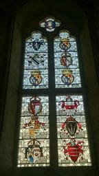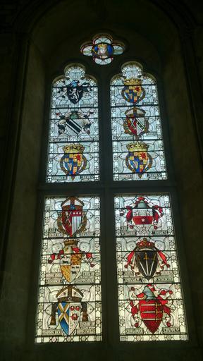 Keywords: Winchester Great Hall, window 8.jpg Winchester Great Hall representing Charles II of England Charles II Richard Cromwell Sable a lion argent armed and langued gules James I of England James I Quarterly 1st and 4th quarterly I IV Azure 3 fleurs-de-lys Or; II III Gules 3 leopards Or; 2nd Or a lion Gules armed and langued azure within a double tressure flory-counter-flory gules; 3rd Azure a harp Or stringed argent John Cloberry Argent a bend cotised sable Lancelot Andrewes Gules Saint Peter's keys crossed with the sword of Saint Paul impaled with argent on a bend engrailed cotised plain sable three mullets Or Charles II of England Charles II Quarterly 1st and 4th quarterly I IV Azure 3 fleurs-de-lys Or; II III Gules 3 leopards Or; 2nd Or a lion Gules armed and langued azure within a double tressure flory-counter-flory gules; 3rd Azure a harp Or stringed argent Charles I of England Charles I Quarterly 1st and 4th quarterly I IV Azure 3 fleurs-de-lys Or; II III Gules 3 leopards Or; 2nd Or a lion Gules armed and langued azure within a double tressure flory-counter-flory gules; 3rd Azure a harp Or stringed argent Peter Mews Gules Saint Peter's keys crossed with the sword of Saint Paul impaled with paly of argent and azure on a chief gules three crosses formy William Ogle 1st Viscount Ogle Sir William Ogle Argent on a fess gules a mullet argent between 3 mullets argent Anthony Ashley Cooper 1st Earl of Shaftesbury Quarterly 1st and 4th argent 3 bulls passant sable; 2nd and 3rd gules a bend engrailed Or between three lions Or John Paulet 5th Marquess of Winchester Sable three swords pilewise points in base proper pomels and hilts Or Thomas Ken Azure a saltire per saltire quarterly quartered Or and argent impales with argent 3 crescents gules Chaloner Chute died 1666 Chaloner Chute Gules 3 swords argent barwise points to the dexter hilts and pomels Or 2015-08-01 11 58 56 own OwenBlacker other versions 51 062620555556 -1 3194702777778 cc-zero Uploaded with UploadWizard Stained glass windows at Winchester Great Hall |