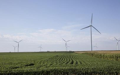 Keywords: wind turbines field farm power windmill landscape generator energy sky electricity blades propeller