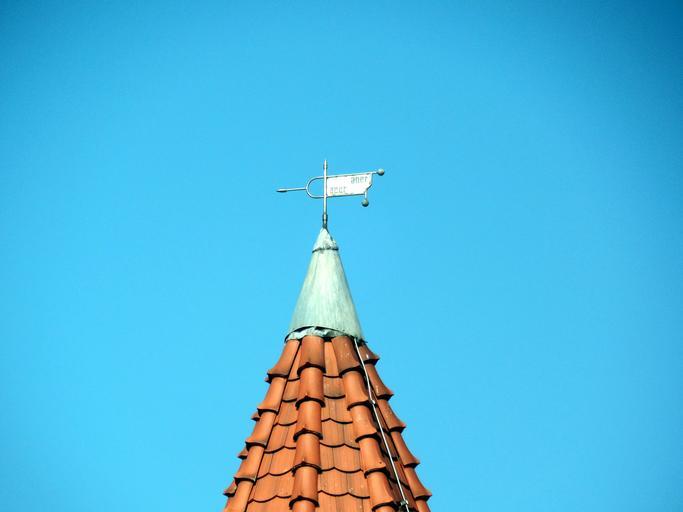 Keywords: wind vane wind direction wind weather weathervane wind direction sensor wind speed blue sky roof tower pointed great spire