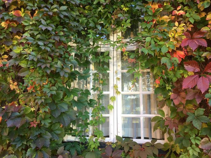 Keywords: window climbing plant virginia creeper autumn green