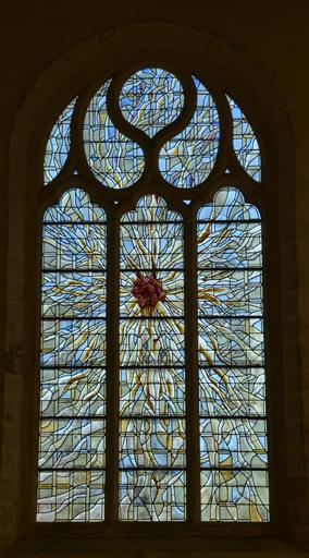 Keywords: window glass stained glass abbey symmetry faith religion abbaye du relec brittany france