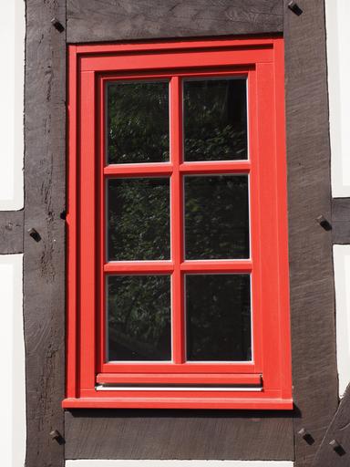 Keywords: window lattice window glass red window frames fachwerkhaus