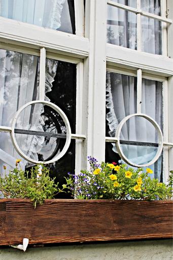 Keywords: window old farmhouse building floral decorations romantic rustic cottage garden still life home