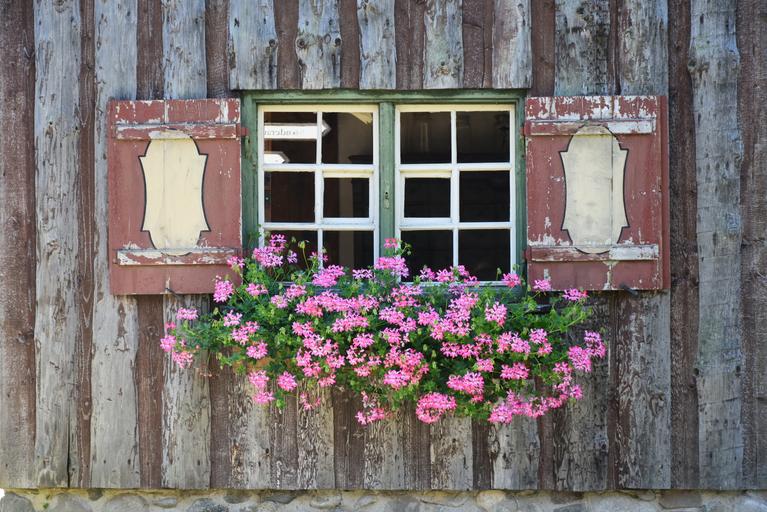 Keywords: window window sill flowers shutters atmosphere farmhouse bavaria wooden windows weathered old farmhouse historically old geranium facade architecture rustic house flower jewelry old window