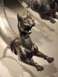 Keywords: Wine horn with lynx protome, view 2, Iran, Parthian period, 1st century BC - 1st century AD, silver and gilt - Arthur M. Sackler Gallery - DSC05825.JPG en Exhibit in the Arthur M Sackler Gallery Washington DC USA This artwork is old enough so that it is in the public domain Photography was permitted in the museum without restriction 2013-02-12 16 33 59 own Daderot cc-zero Near Eastern antiquities in the Arthur M Sackler Gallery Uploaded with UploadWizard Parthian rhyta |