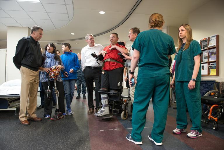 | Keywords: Winnefeld, Manning visit wounded warriors 150324-D-LU831-021.jpg en Vice Chairman of the Joint Chiefs of Staff Adm James A Winnefeld Jr talks with a wounded warrior at Walter Reed National Military Medical Center Bethesda Md March 24 2015 Winnefeld visited the center with Peyton Manning NFL quarterback for the Denver Broncos to raise the morale of wounded ill and injured service members being treated there DoD photo by U S Air Force Master Sgt Nathan Gallahan/released 2015-03-24 Master Sgt Nathan Gallahan https //www dvidshub net/image/1836302 150324-D-LU831-021 2015-03-25 04 19 BETHESDA MD US PD-USGov James A Winnefeld Jr Wounded Warrior 2015 Images from DoD uploaded by Fæ |
