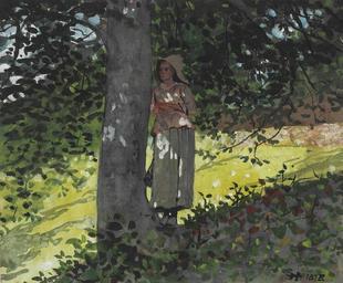 | Keywords: Winslow Homer - A Shady Spot, Houghton Farm (1878).jpg Artwork Creator Winslow Homer title A Shady Spot Houghton Farm 1878 watercolor gouache paper cm 17 8 21 object history Lawson Valentine New York circa 1879 <br/>Lucy Houghton Valentine wife of the above by descent 1891 <br/>Almira Valentine Pulsifer daughter of the above by descent 1911 <br/>Lawson Valentine Pulsifer Mountainville New York son of the above by descent <br/>Natalie Pulsifer Byles daughter of the above by descent 1957 <br/>Pamela B Miller Brooklyn New York daughter of the above by descent 1976 <br/>Christie's New York 5 December 2002 lot 23 <br/>Private collection <br/>Thomas Colville Fine Art Guilford Connecticut <br/>Richard Thune Greenwich Connecticut <br/>Acquired by the last owner from the above circa 2007 credit line exhibition history Brooklyn New York The Museum of the Brooklyn Institute and elsewhere Water Colors by Winslow Homer October 16-November 7 1915 no 19 <br/>New York Whitney Museum of American Art Winslow Homer Centenary Exhibition December 15 1936-January 15 1937 no 44 <br/>Pittsburgh Pennsylvania Carnegie Institute Centenary Exhibition of Works of Winslow Homer January 28-March 7 1937 no 97 <br/>Mountainville New York Storm King Art Center Winslow Homer in New York State June 29-August 22 1963 no 32 <br/>New York The Katonah Gallery Winslow Homer September 8-October 15 1963 no 6 <br/>Chicago Illinois Art Institute of Chicago Watercolors by Winslow Homer The Color of Light February 16-May 11 2008 H 1878 ~ lower right monogram / date christies online 5793633 2851 70 NYC 22 May 2014 Other versions PD-old-100-1923 DEFAULTSORT Winslow Homer - Weary Watercolor paintings by Winslow Homer 1870s paintings by Winslow Homer Paintings of girls 1878 paintings |