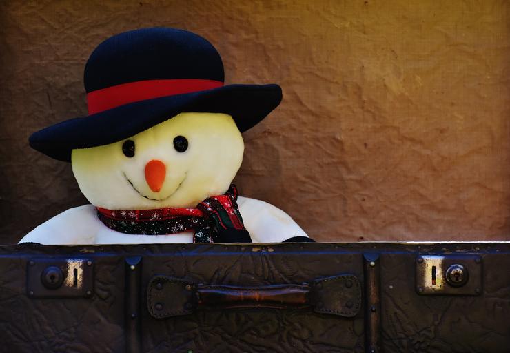 Keywords: winter ade snow man send away luggage antique funny leather old suitcase junk generations travel go away wave