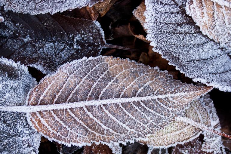 Keywords: winter fall foliage hoarfrost precipitate cold frozen ice humidity crystals sugar eiskristalle white brown transparent nature geometric macro