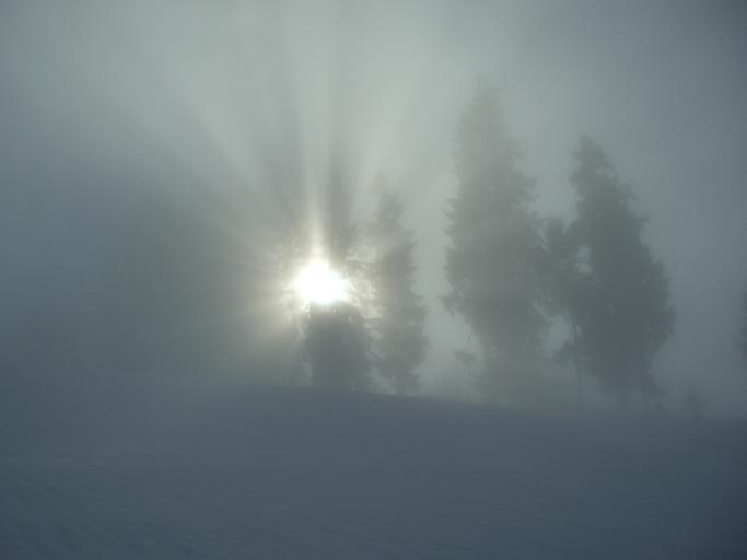 Keywords: winter fog grey trees sunbeam allgäu
