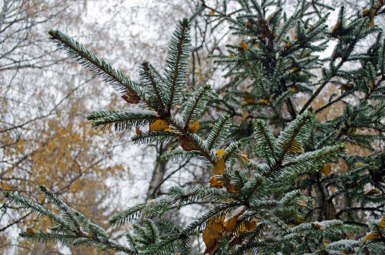 Keywords: winter forest seasons wood branch evergreen snow nature pine christmas leaves orange macro autumn