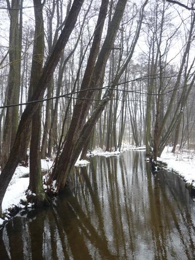 Keywords: winter forest snow trees river water nature mirroring