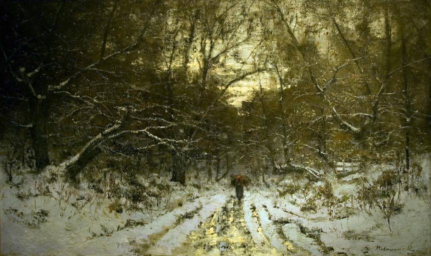 Keywords: Winter landscape by Mednyánszky.jpg Téli táj Winter Landscape Oil on canvas 72x120 5 cm Hungarian National Bank own ; Photo by Szilas at the exhibition in the Gallery of Judit Virág Budapest Creator László Mednyánszky PD-old-auto 1919 Other versions Landscapes by László Mednyánszky Paintings of country roads in winter |