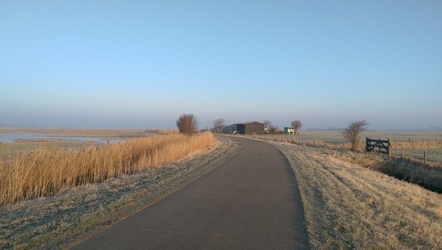 Keywords: winter landscape nature cold winter landscape white sunrise dutch landscape freezing blue sky zealand polder polderroad road of course view meadow clear blue sky morning morning sun early soft
