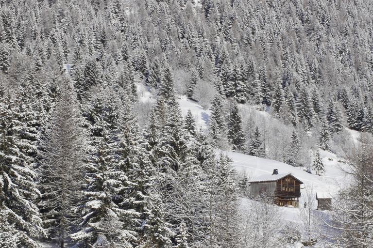 Keywords: winter mountains chalet hut woods snow forest hill alps winter landscape travel alpine