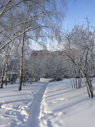 Keywords: winter path birch