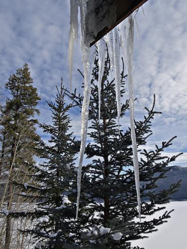 Keywords: winter scenery trees icicles cold snow landscape frozen lake canim lake british columbia canada season