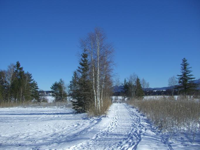 Keywords: winter snow footprints away birch firs reed mountain panorama alpine allgäu ostallgäu white sky blue sunny