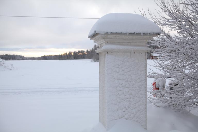 Keywords: winter snow landscapes port milestone wood white forest sky blue