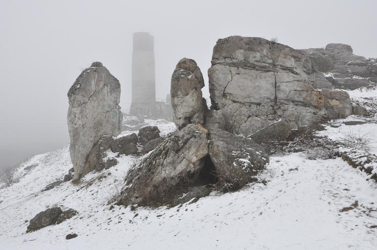 Keywords: winter snow white castle the ruins of the rocks upland jura krakowsko-czestochowa olsztyn poland