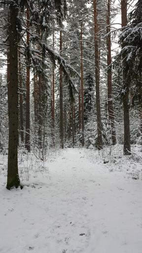 Keywords: winter time of year snow path forest track tree pines