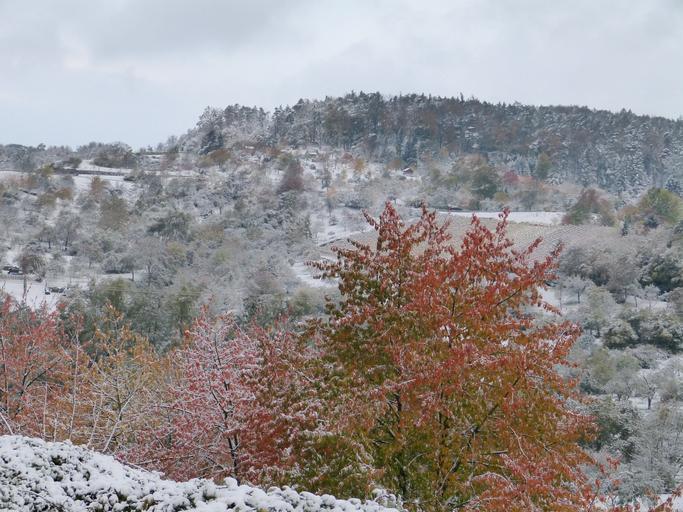 Keywords: winter winter blast maple tree red leaves snow autumn