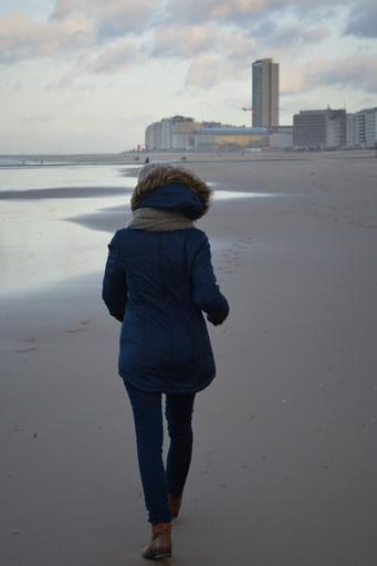 Keywords: winter winter clothing walk on the beach woman jacket people hood beach oostende
