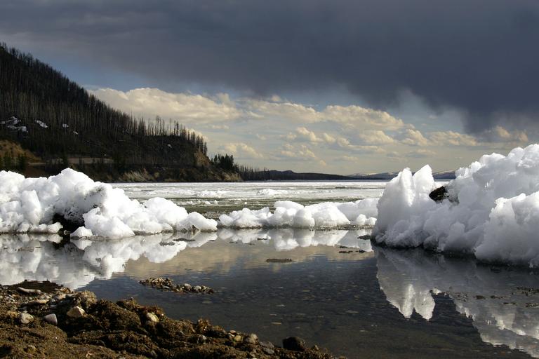 Keywords: winter yellowstone lake wyoming thunderstorm sky clauds water ice snow scenery landscape mountains nature usa