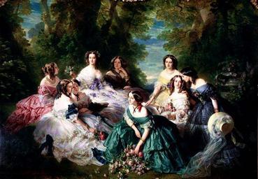 Keywords: Winterhalter Eugenie.jpg Artwork Creator Franz Xaver Winterhalter fr Portrait collectif avec l'impératrice Eugénie de Montijo la baronne de Pierres la princesse d'Essling la vicomtesse de Lezay-Marnésia la marquise de Montebello la duchesse de Bassano la baronne de Malaret la marquise de Las Marismas et la marquise de Latour-Maubourg 1855 Oil on canvas cm 300 420 Musée National de Palais de Compiègne accession number MMPO 941 scan by User Manfred Heyde M5009000486 PD-old-100 ImageNote 1 203 299 138 140 1400 971 2 První dvorní dáma knežna Esslingová ImageNoteEnd 1 ImageNote 2 450 250 109 122 1400 971 2 Císařovna Evženie ImageNoteEnd 2 ImageNote 3 319 422 82 114 1400 971 2 Baronka z Pierres ImageNoteEnd 3 ImageNote 4 380 422 74 114 1400 971 2 Vikomtesa z Lezay-Marnezia ImageNoteEnd 4 ImageNote 5 597 301 95 101 1400 971 2 Vévodkyně Pavlína Marie z Bassana ImageNoteEnd 5 ImageNote 6 693 472 91 115 1400 971 2 Hraběnka z Montebella ImageNoteEnd 6 ImageNote 7 877 289 93 105 1400 971 2 Baronka z Maraletu ImageNoteEnd 7 ImageNote 8 921 404 79 105 1400 971 2 Markýza Klára Emílie z Las-Marismas ImageNoteEnd 8 ImageNote 9 977 366 93 94 1400 971 2 Anna Mortier z Trévise provdaná markýza z La Tour-Maubourgu ImageNoteEnd 9 Empress Eugénie Surrounded by her Ladies-in-Waiting Winterhalter |