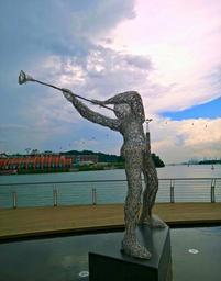 Keywords: wire sculpture art metal statue steel abstract sculpture wire man silver aluminium steely metallic music saxophone sentosa
