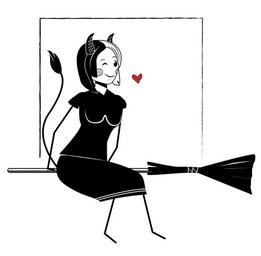 Keywords: witch devil girl woman halloween pretty demon female broom heart