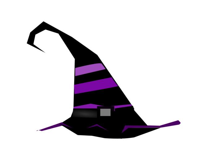 Keywords: witch hat sorceress stripes purple pink black halloween buckle pointed crooked wide brim