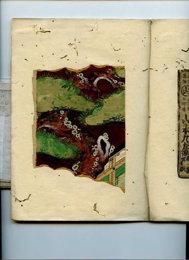 | Keywords: Wittig.collection.manuscript.01.japanese.art.scrapbook.image.11.page.13.leaf.07.jpg en 11th image; fragment of a painting on paper; detail of a garden/landscape scene showing a part of a gnarled ancient pine tree a balcony railing gold edging top bottom Left edge appears to be actual edge of painting or of section of a multi-panel painting Wittig collection manuscript-01 a Japanese art scrap-book; identified as containing fragments of paintings prints dating from approximately the Sengoku through Edo periods; item 11 of 13 located on page 13 leaf 07 right-to-left 18 or previous all works in this scrapbook date from approximately the Sengoku through Edo periods Scan of manuscript scrap- book Scanned at 12 800 dpi 48 bit colour raw scan with no enchancements compressed jpg Scale reference scan-bed is approximately 14 x 7 ; more precise measurements pending Image could benefit from restoration full set of images could be joined to create an e-book version of original art scrap-book etc author Original PD-old Japanese manuscripts Scrapbooking Paintings of the Edo period Wittig collection manuscript 01 japanese art scrap-book |