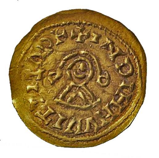 Keywords: Wittizacoinbracara.jpg Triente de ouro procedente da ceca bracarense Gallaecia na que se representa a Witiza como rei Transferred from http //gl wikipedia org gl wikipedia 2008-06-18 SIMÕES PETANA Nuno autoría propia gl gl Alexandre Vigo Visigothic coins 0702 Coins of the 8th century Witiza |
