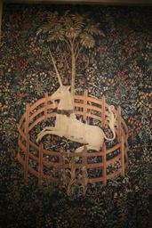 MAKE A MEME View Large Image WLA metmuseum 1495 Unicorn captivity.jpg author The Unicorn in Captivity one of the series of seven tapestries The Hunt of the Unicorn La Licorne captive Tapisserie de la série de La Chasse à la licorne  捕獲された 角獣  ...