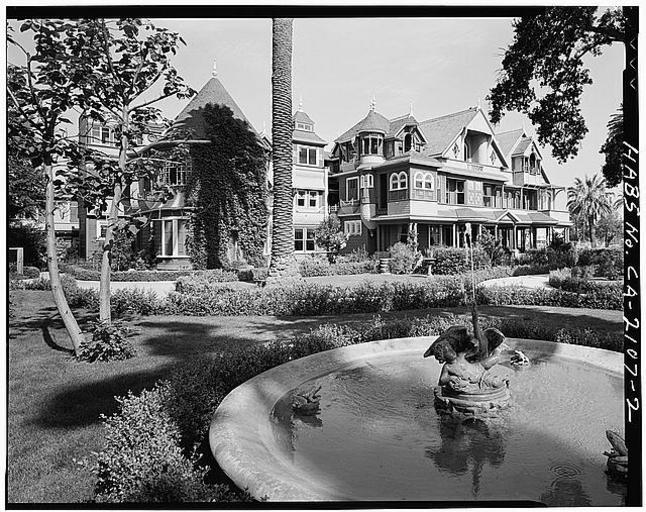 | Keywords: WMH5.jpg Winchester House 525 South Winchester Boulevard San Jose Santa Clara CA VIEW LOOKING NORTHWEST LOC-image hhh CA0959 1980 HABS CA-2107 Winchester Mystery House Black and white photographs of gardens Black and white photographs of houses Fountains in San Jose California Winchester Gardens in California Winchester Victorian architecture in California Winchester |