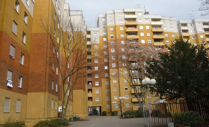 Keywords: Wohnblock im Hemshof.jpg en house in Ludwigshafen Own Immanuel Giel 2009-03 Ludwigshafen-Hemshof