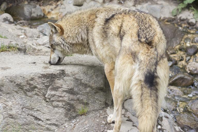 Keywords: wolf canis lupus wild animal canine hunter zoo fur european wolf stone sniffing taster profile
