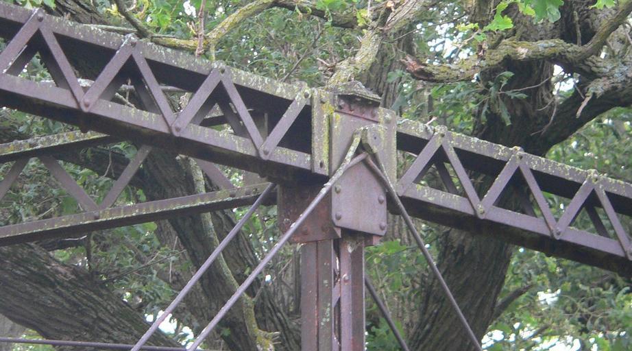 | Keywords: Wolf Creek bridge (Otoe Co) upper connection 1.JPG en Abandoned bridge in southeastern Nebraska carrying former county road on Cass-Otoe county line across Wolf Creek just west of US Highway 75 Upper connection at top of middle of three vertical members on north side of bridge View is from the north so from outside of the bridge looking toward its midline 2013-06-27 06 45 30 own Ammodramus cc-zero Pictures by Ammodramus Wolf Creek bridge Otoe County Nebraska Uploaded with UploadWizard | ||||