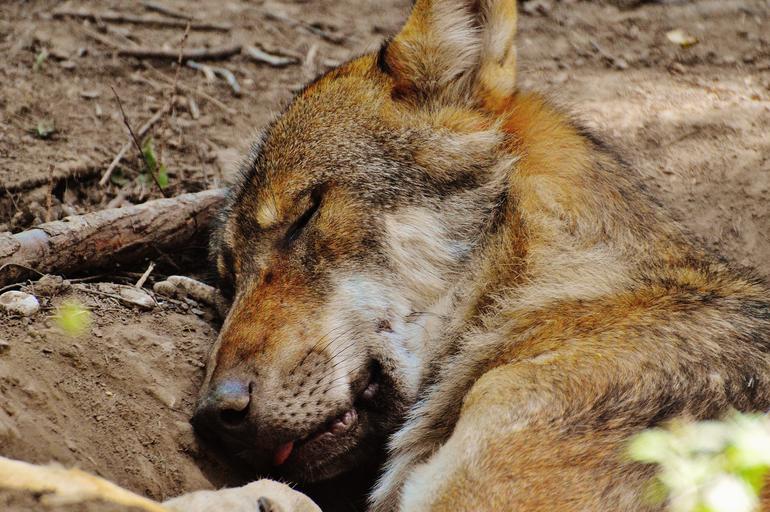 Keywords: wolf sleeping relaxed animal wild animal animal world fur tired sleep wildpark poing