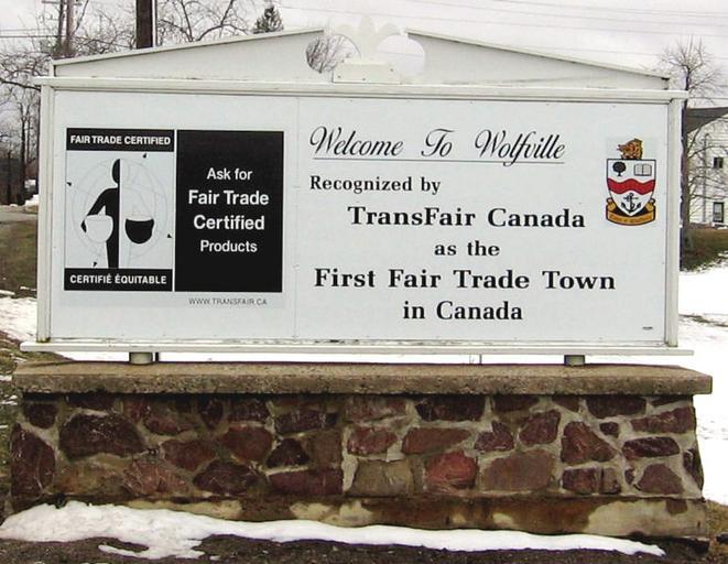 Keywords: Wolfville-fair-trade-sm.jpg I took this photo myself on April 14th 2007 I release all rights for the use of this photo This is a zoomed in version Transferred from http //en wikipedia org en wikipedia 2007-04-16 Original uploader was Tohemp at http //en wikipedia org en wikipedia Released into the public domain by the author en wikipedia Tohemp original upload log page en wikipedia Wolfville-fair-trade-sm jpg 2007-04-16 20 54 Tohemp 859×666×8 171921 bytes <nowiki>I took this photo myself on April 14th 2007 I release all rights for the use of this photo This is a zoomed in version </nowiki> Signs in Canada Kings County Nova Scotia Fair trade |