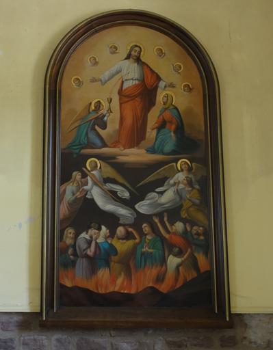 | Keywords: Wolxheim StDenis05.jpg fr Alsace Bas-Rhin Wolxheim Chapelle Saint-Denis Tableau de Caroline Sorg Christ ressuscité sauveur des âmes du purgatoire 1886 2011-08-05 own Rh-67 cc-by-sa-3 0 48 34 46 194 N 7 31 3 342 E alt 189 2_source exif_heading 246 Artwork / Œuvre d'art / Kunstwerk oil canvas cm 238 135 Chapelle Saint-Denis Wolxheim IM67021314 object history other versions Ralph Hammann PD-old accession number Uploaded with UploadWizard Interior of Chapelle Saint-Denis Wolxheim Neoclassical church paintings in Alsace 19th-century church paintings in Alsace Photographs of Wolxheim by Ralph Hammann Paintings of Christian saints in France Caroline Sorg Church paintings in Bas-Rhin 1886 oil on canvas paintings in France 1886 works in Alsace Salvator mundi |