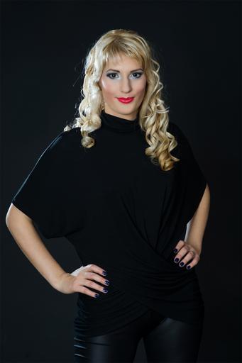 Keywords: woman blonde person looking attractive adult model black clothing fashion blonde hair glamour